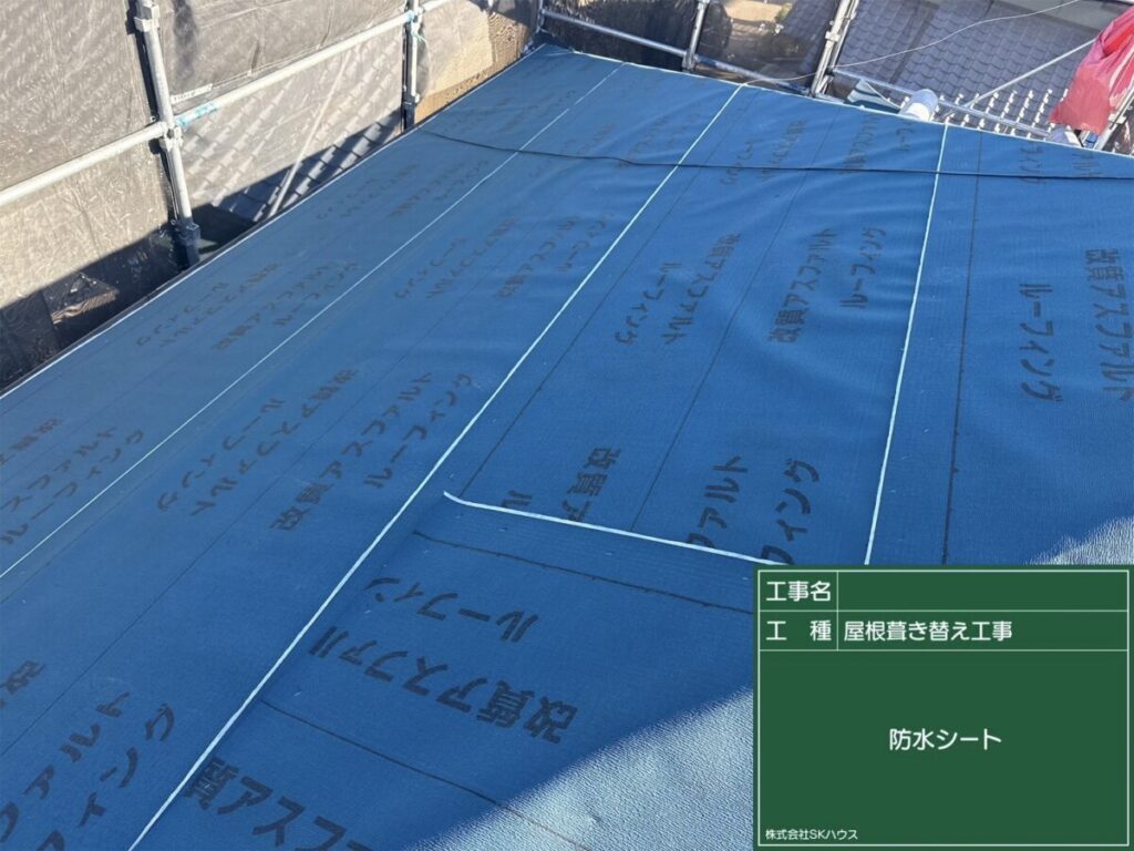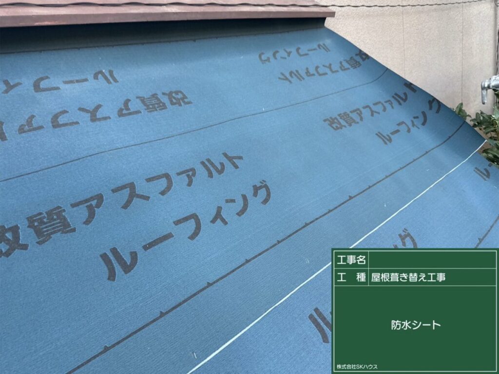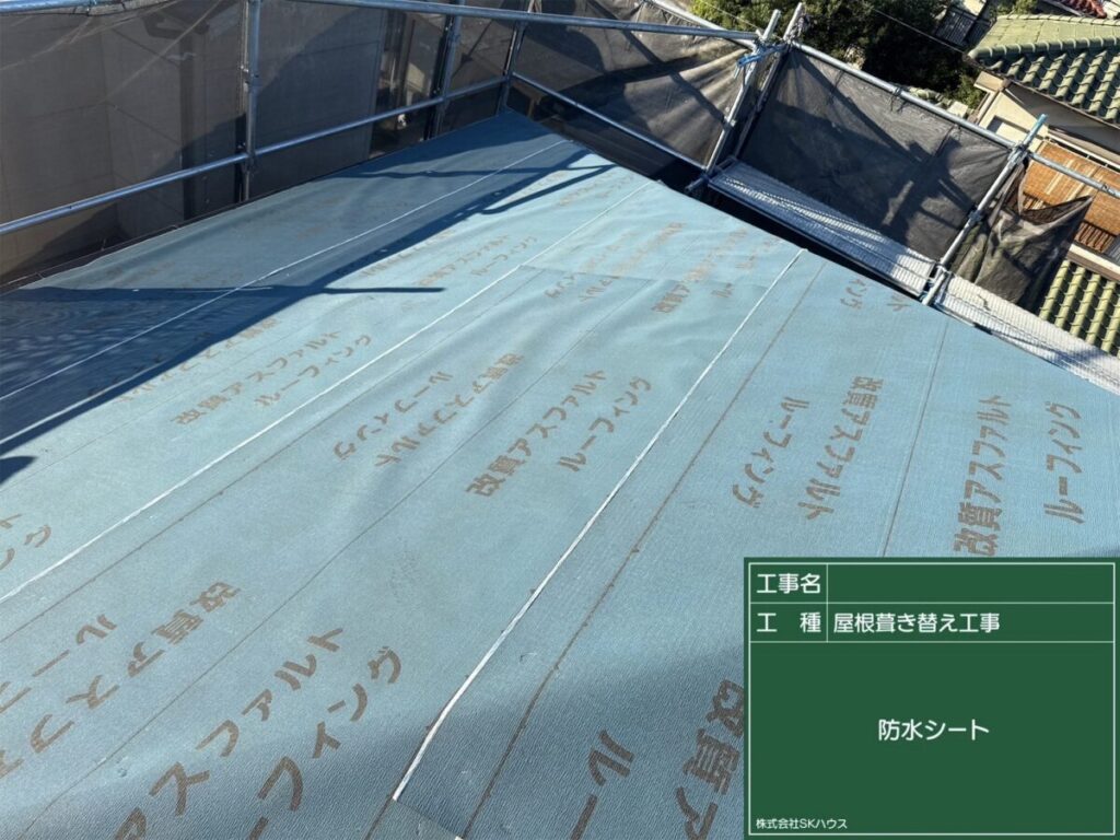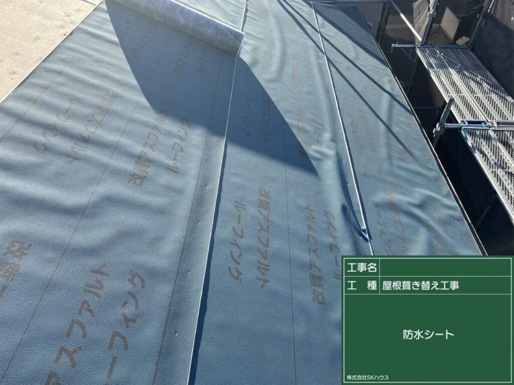 合板の上から防水シートを施工し、雨水の侵入を防止。