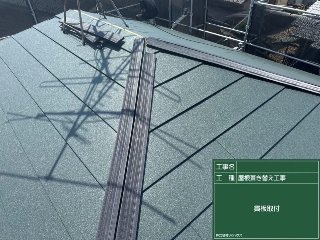 屋根材そのものの性能を高めることで、雨漏りリスクの低減はもちろん、住まい全体の保護性能向上につながる施工内容となっています。