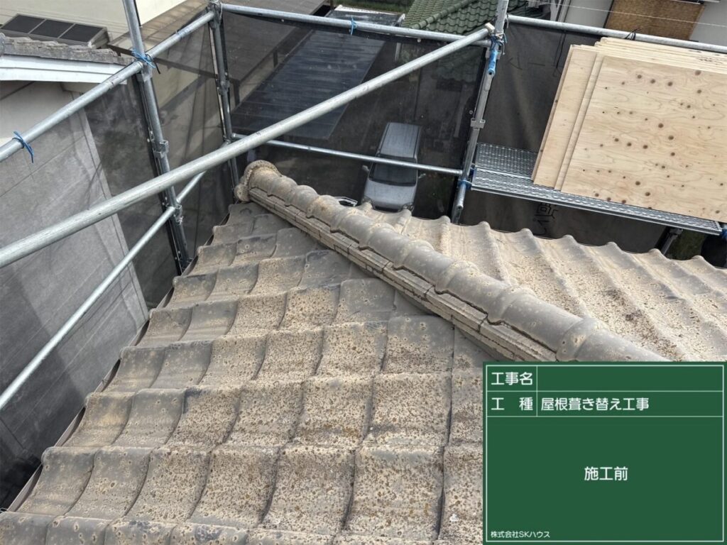 今後の雨漏りリスクを考え、屋根の葺き替え工事を行います。