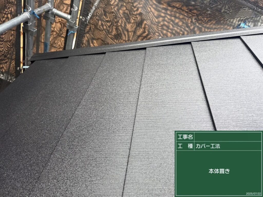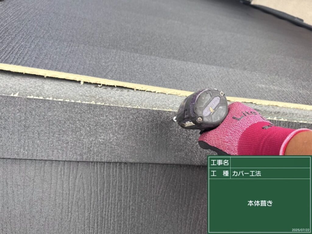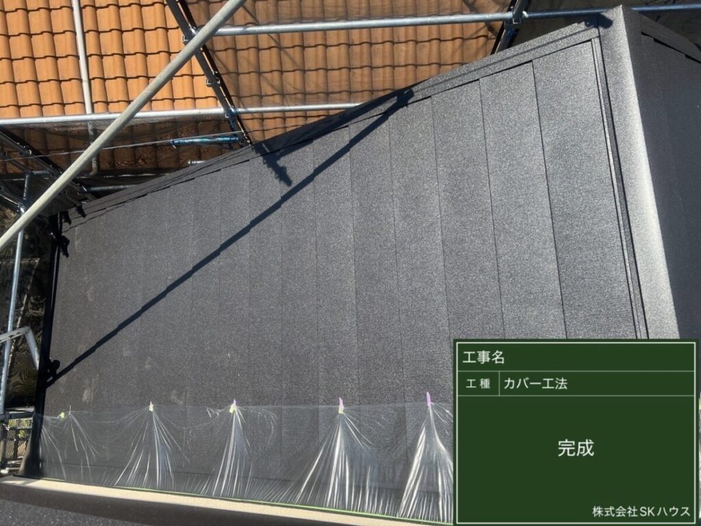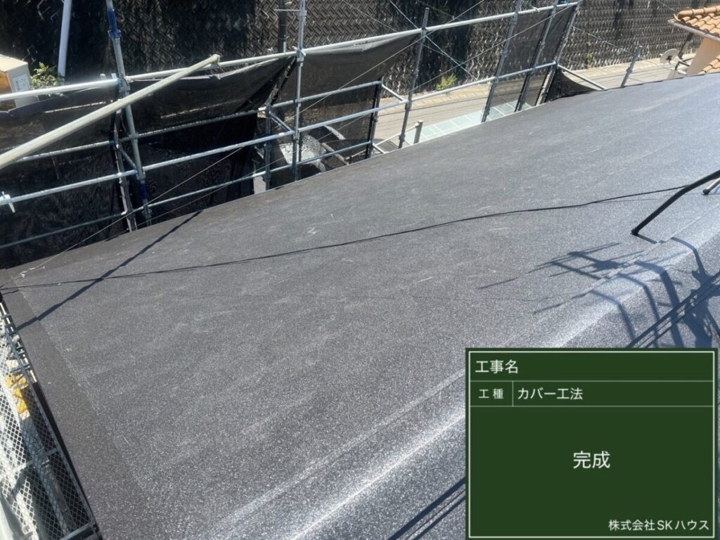 経年劣化が見られた屋根に対し、カバー工法による改修工事を行いました。