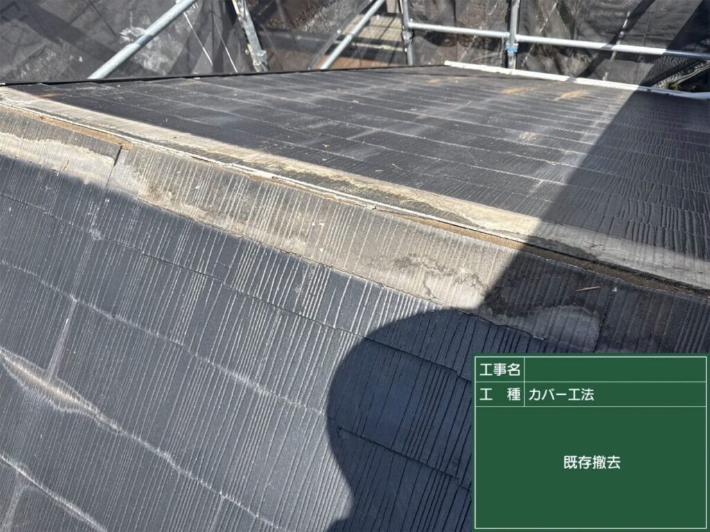 棟板金などの既存部材を撤去し、下地の状態をしっかり確認します。
