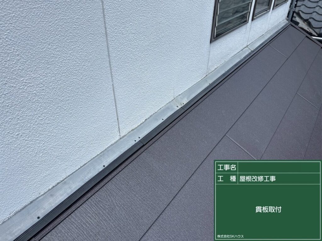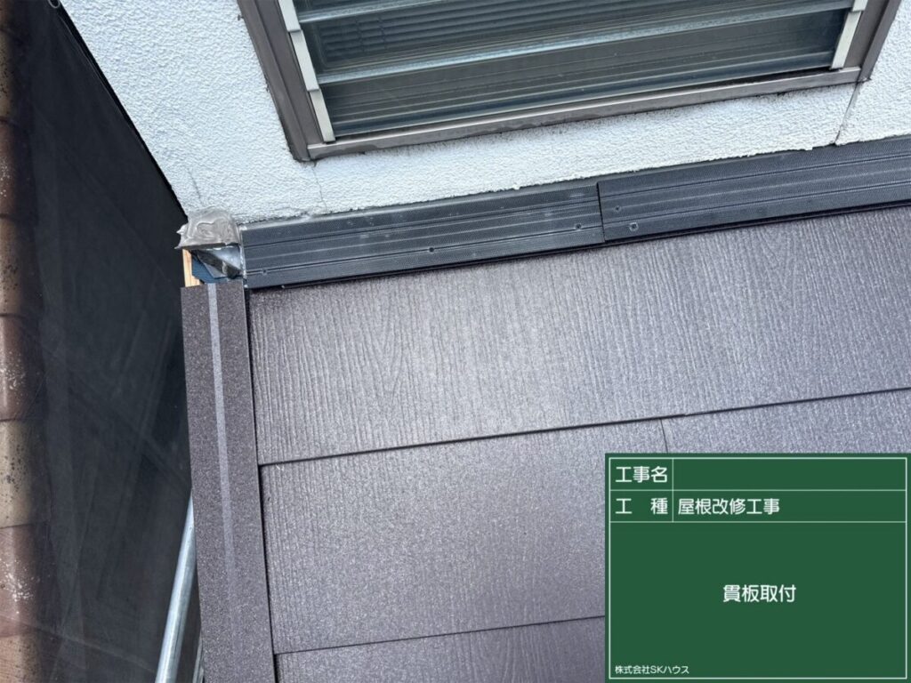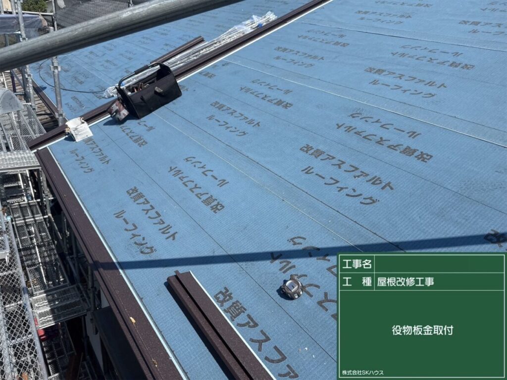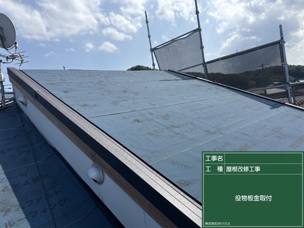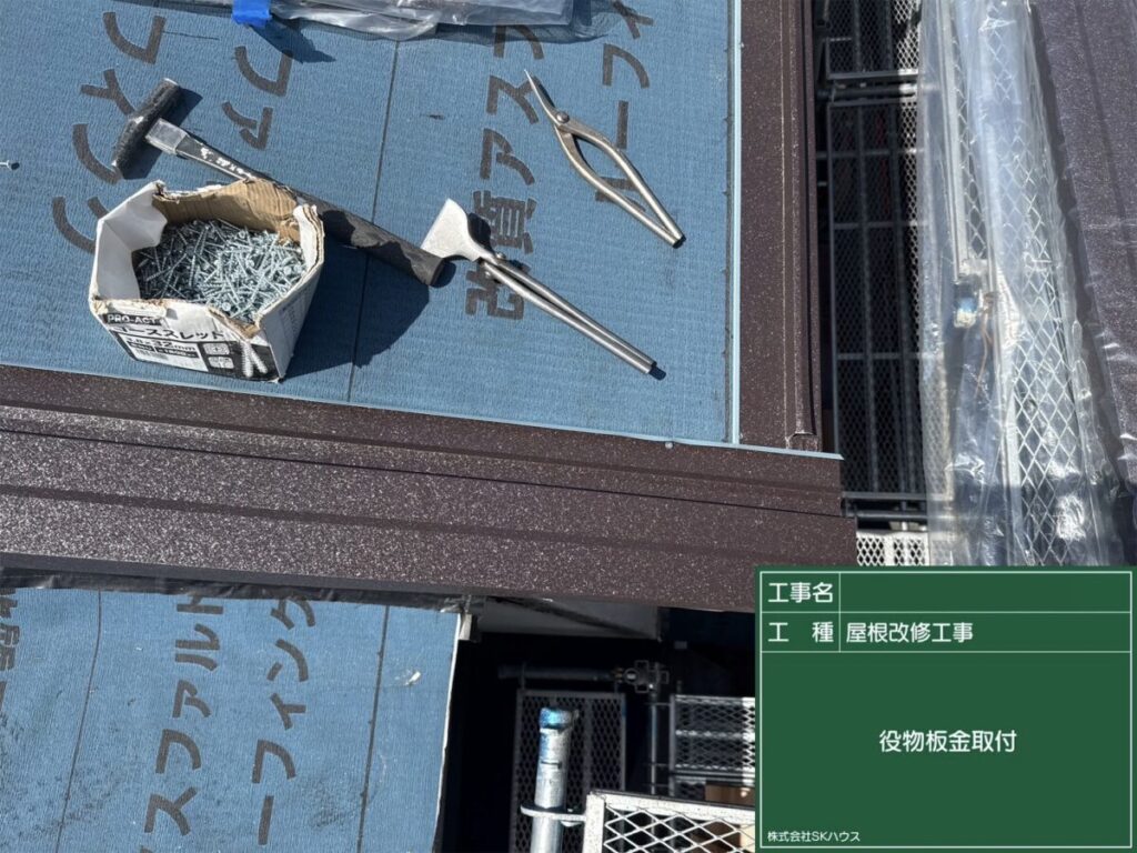 軒先や壁際などの重要な部分に役物板金を取り付けます。