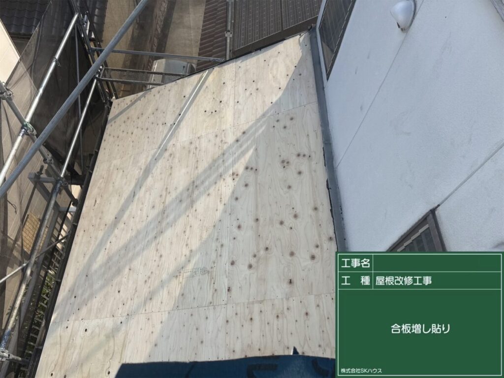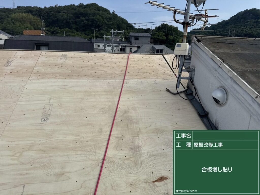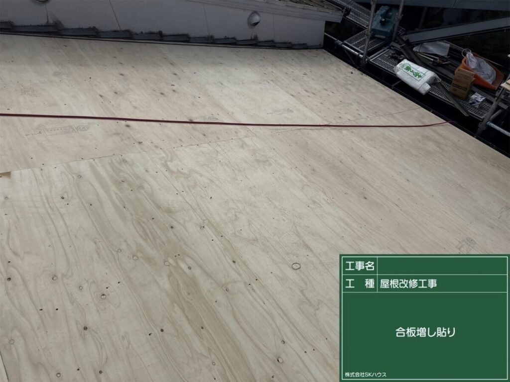 下地の強度を高めるため、構造用合板を増し貼りします。