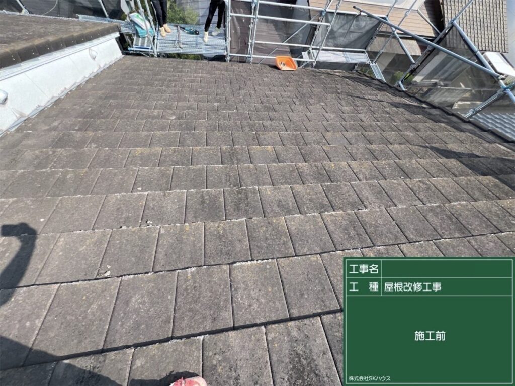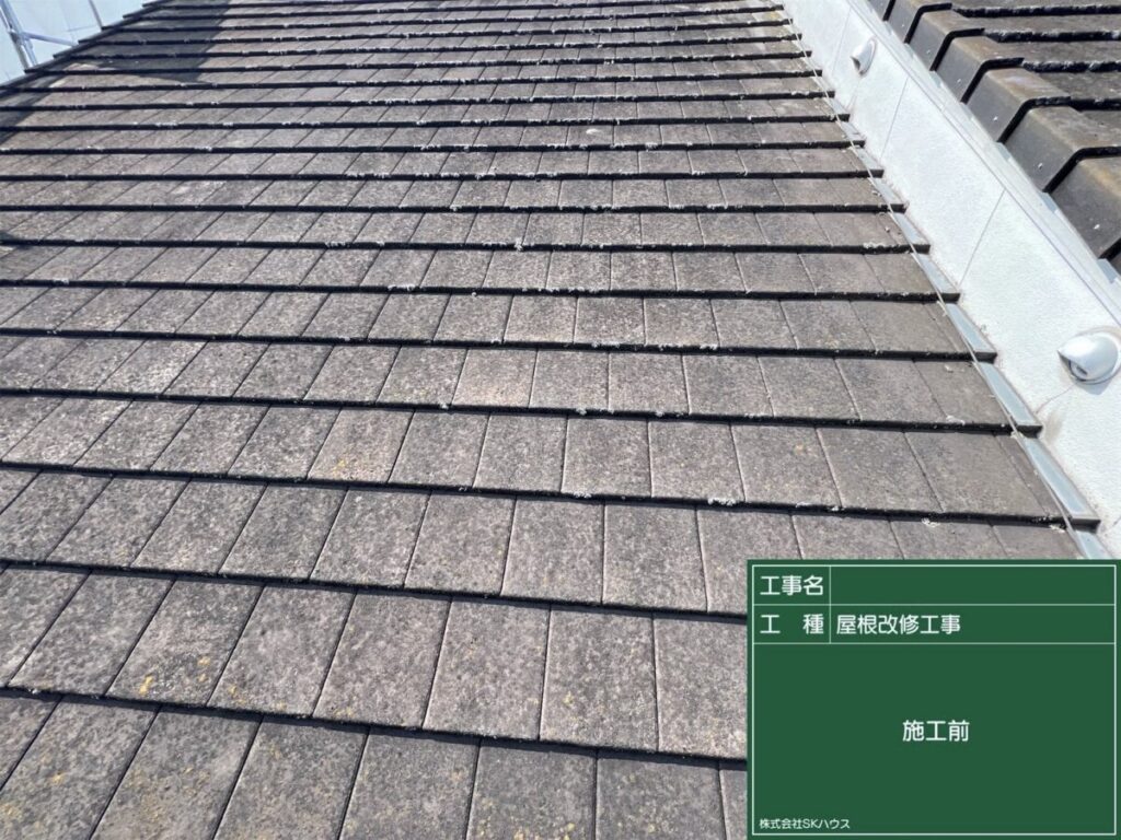 屋根材の劣化が進み、防水性や耐久性に不安が見られる状態でした。