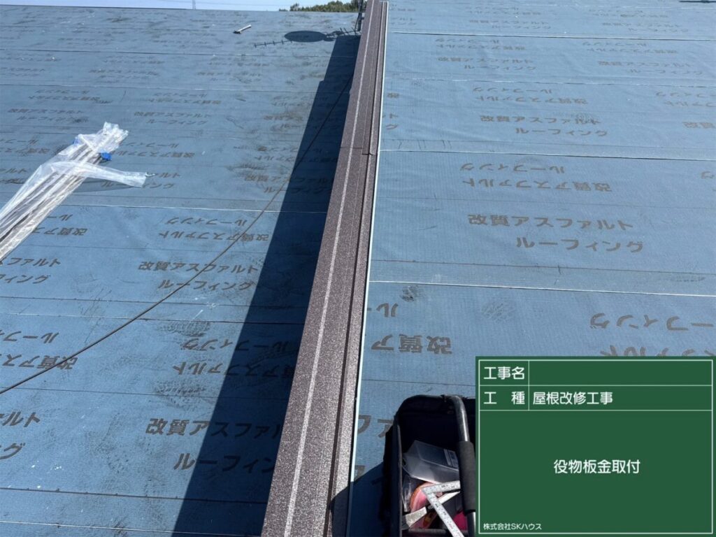 棟板金などの既存部材を撤去し、屋根全体の状態を確認します。