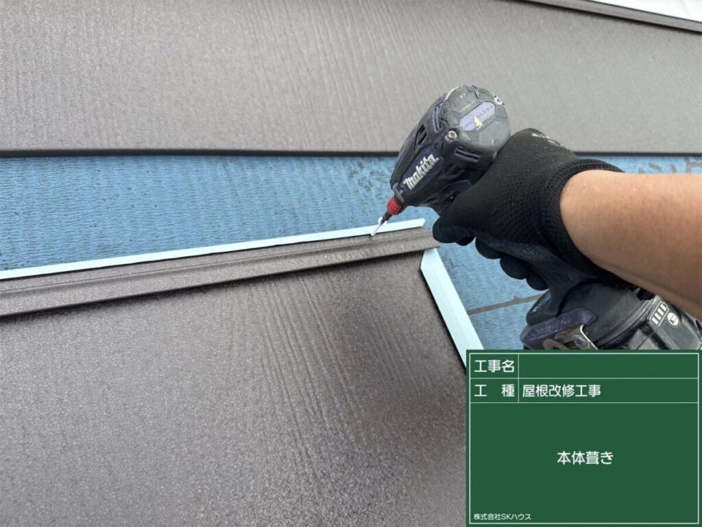 棟板金をしっかり固定するため、貫板を取り付けます。