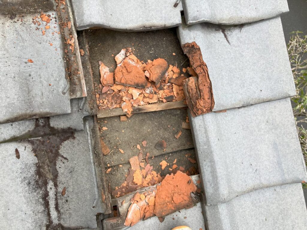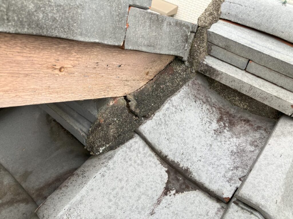 経年劣化により「棟違い部」や「瓦本体」など様々な箇所にひび割れが確認されました。