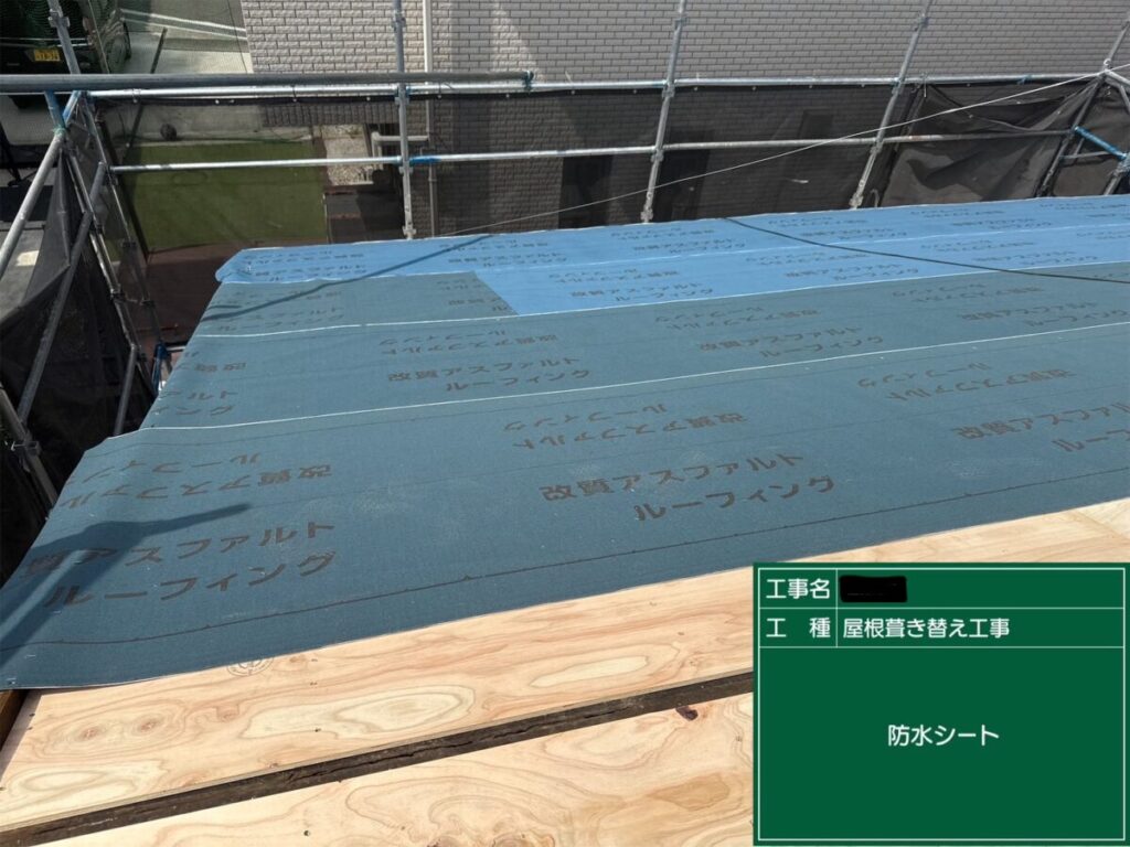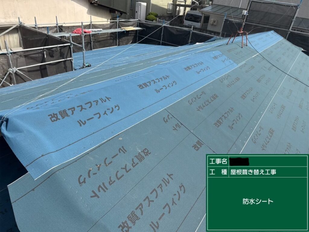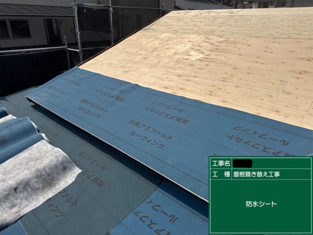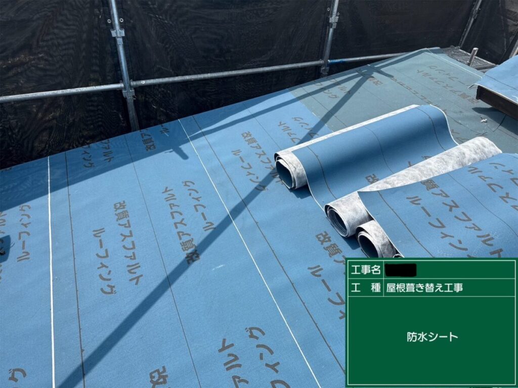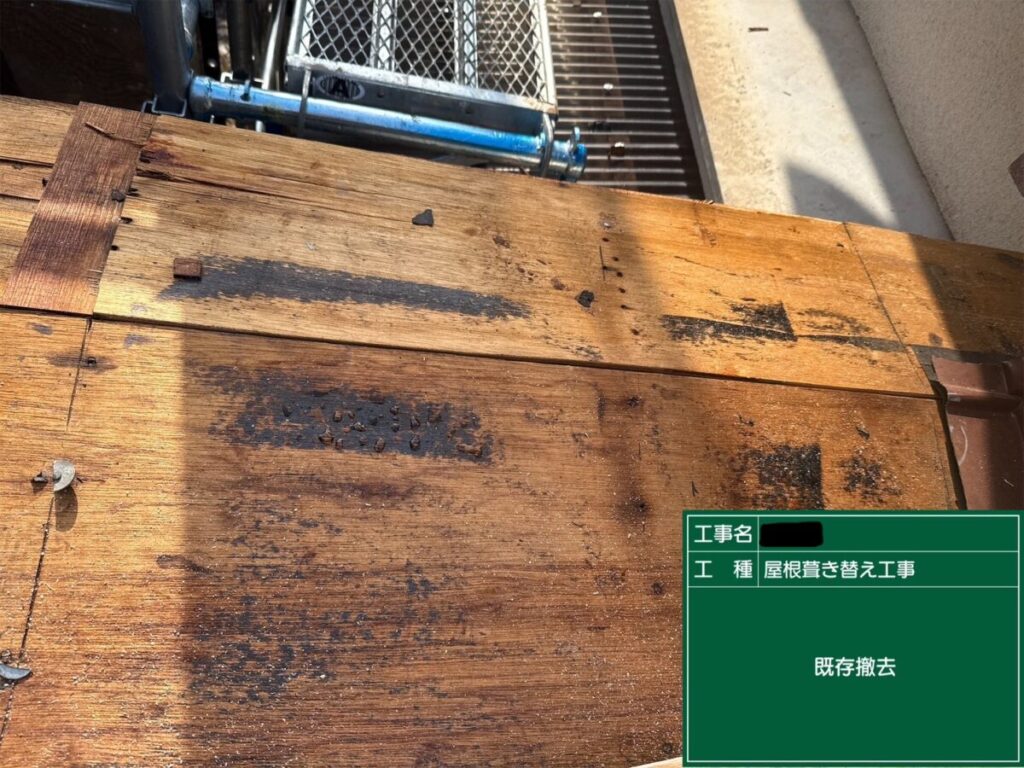 今回の物件は築40年を越えていたため下地(防水シート)の調査をしたところ、かなり傷んでいた為葺き替え工事の提案をしました。