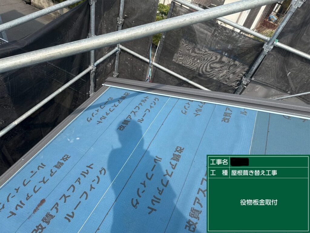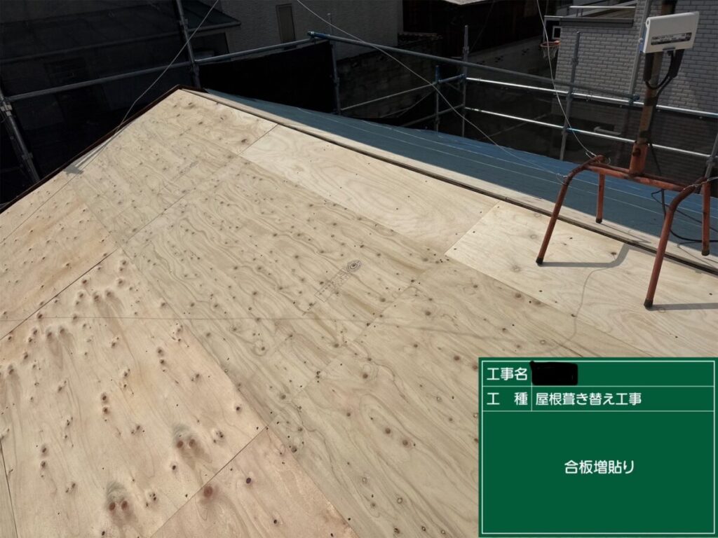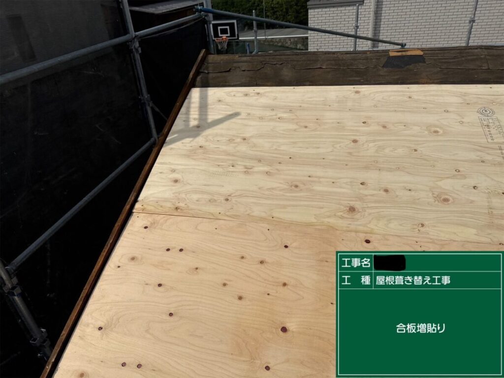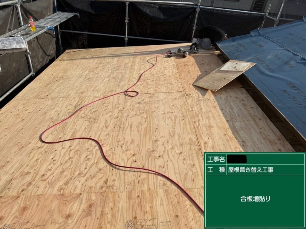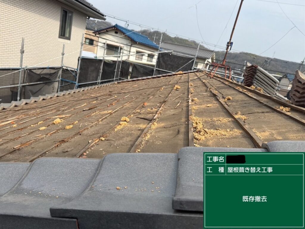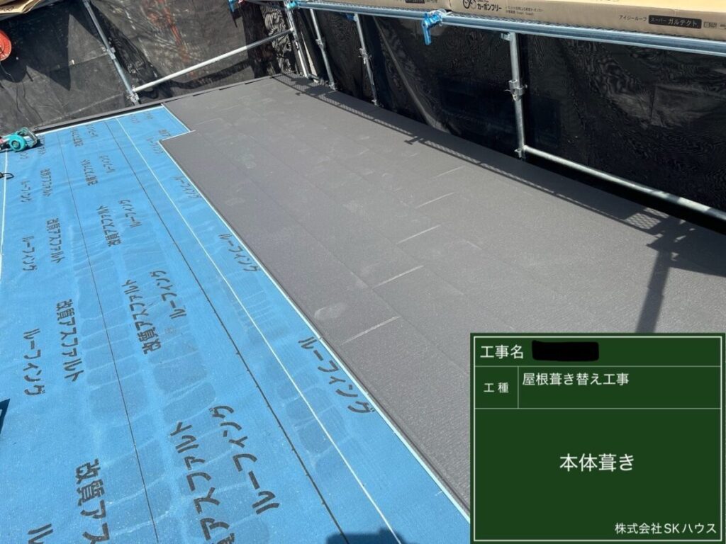今回の物件は築40年を越えていたため下地(防水シート)の調査をしたところ、かなり傷んでいた為葺き替え工事の提案をしました。