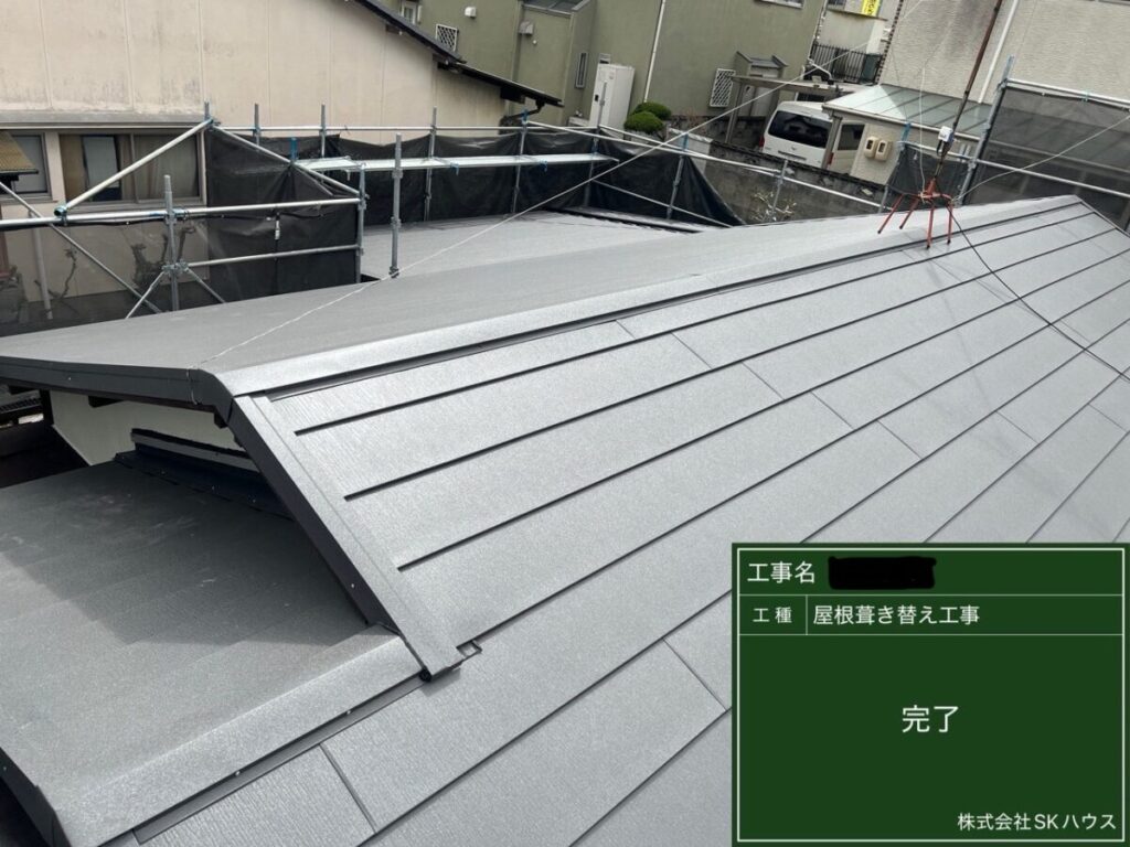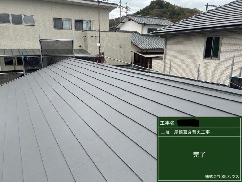 岡山県岡山市O様邸|瓦屋根から軽量で高耐久なスーパーガルテクトへ葺き替え!