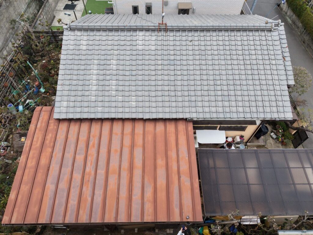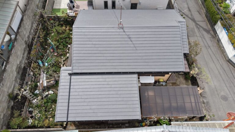 岡山市内のO様邸にて、瓦屋根から「スーパーガルテクト」への屋根葺き替え工事を行いました。築年数が経過した瓦屋根は、地震時の安全性や雨漏りリスクの点で不安があり、今回の工事で軽量かつ耐久性に優れた金属屋根に刷新されました。