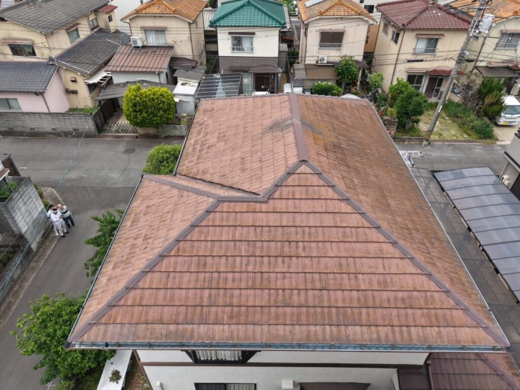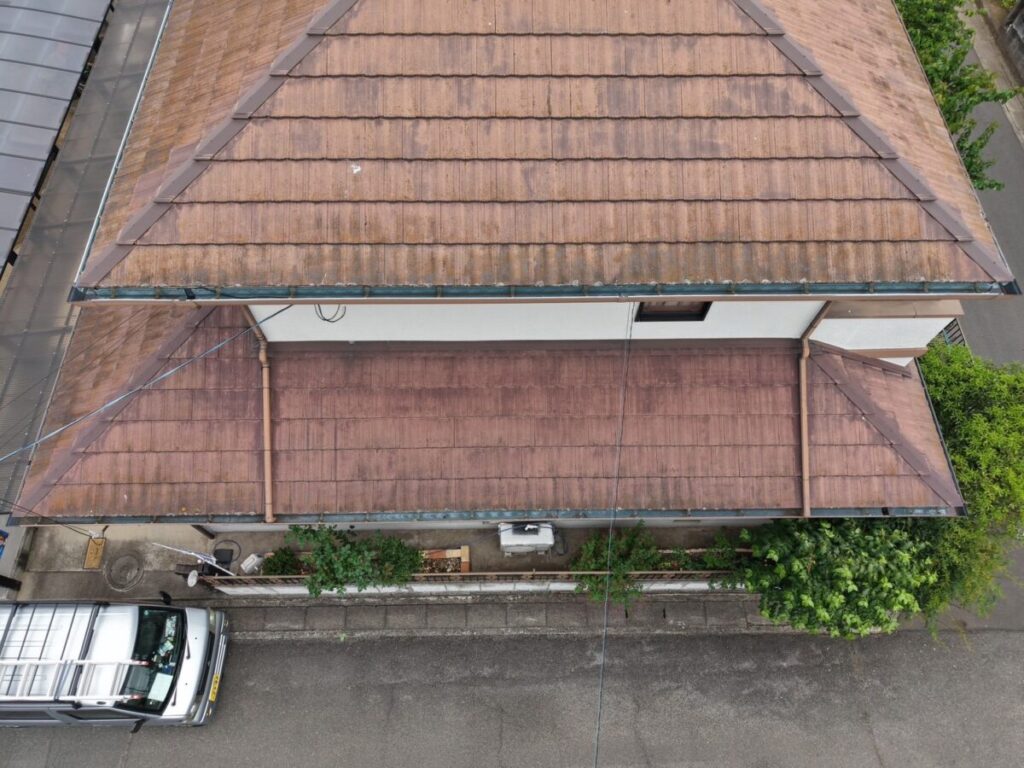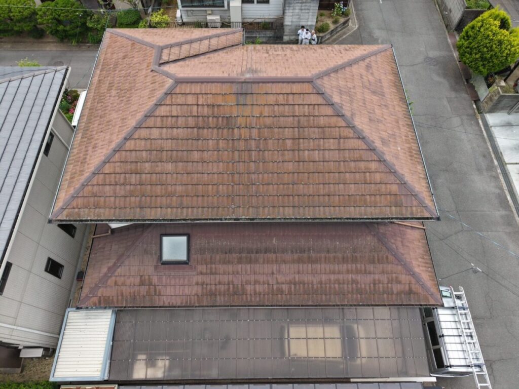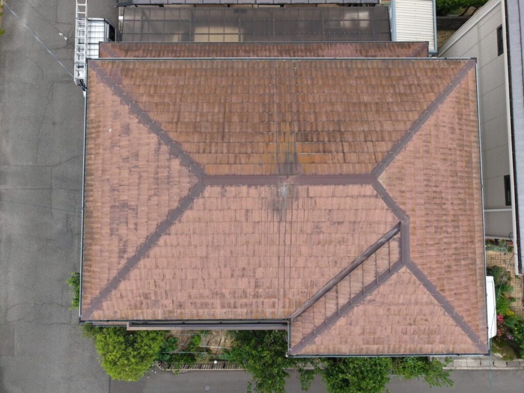 屋根全体に経年による傷みが見られ、防水性の低下が懸念される状態でした。