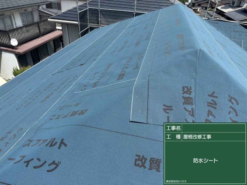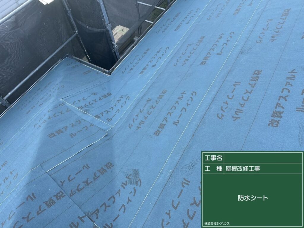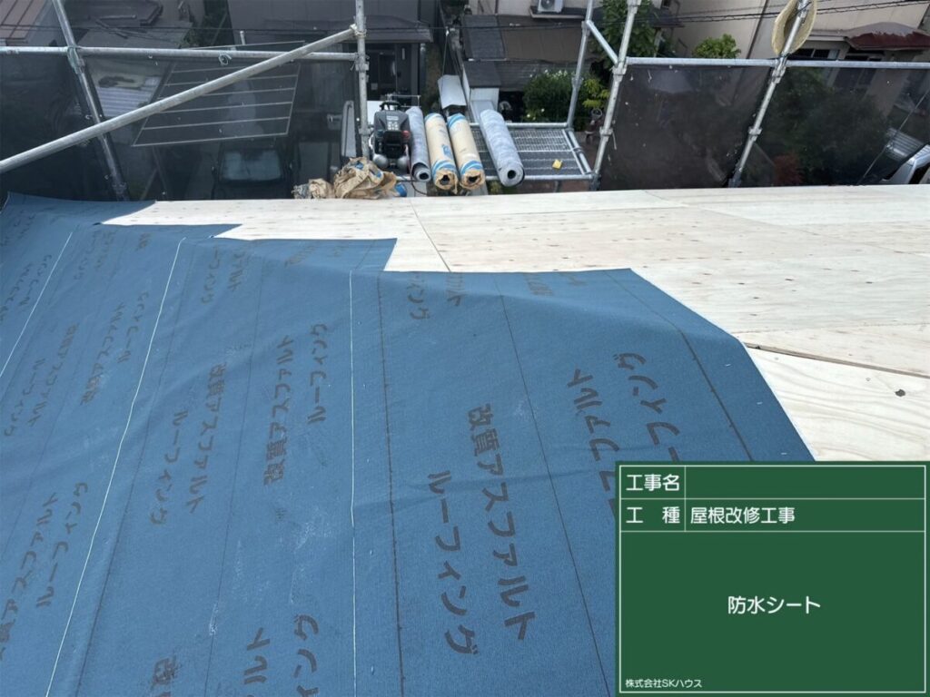 屋根全体に防水シートを施工し、雨水の侵入を防ぎます。