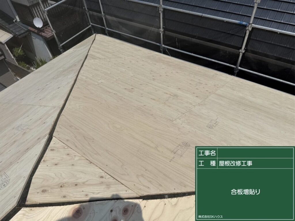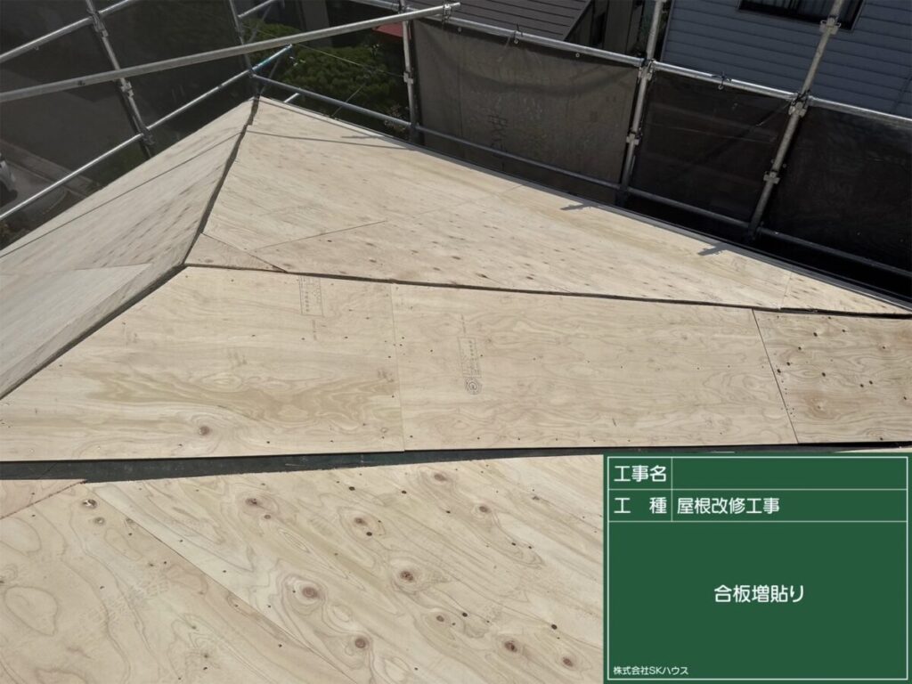 下地の補強として合板を増し貼りし、しっかりとした基盤をつくります。