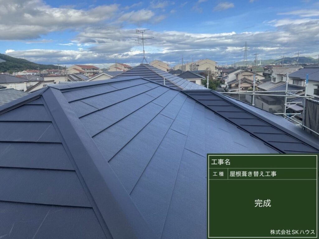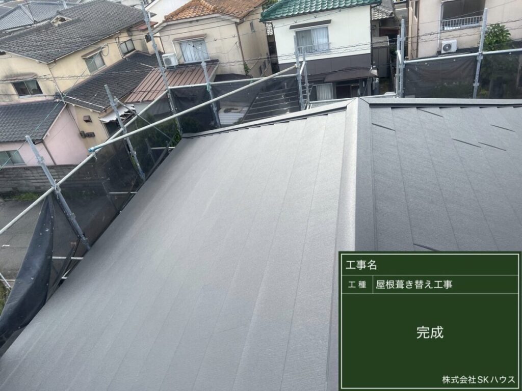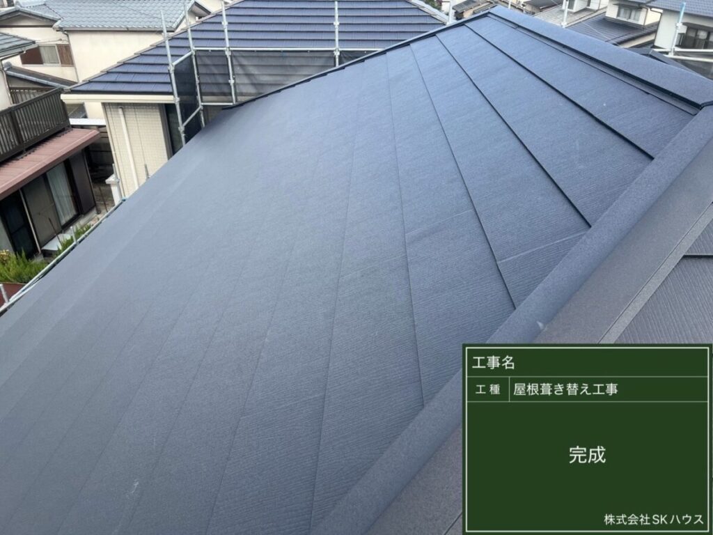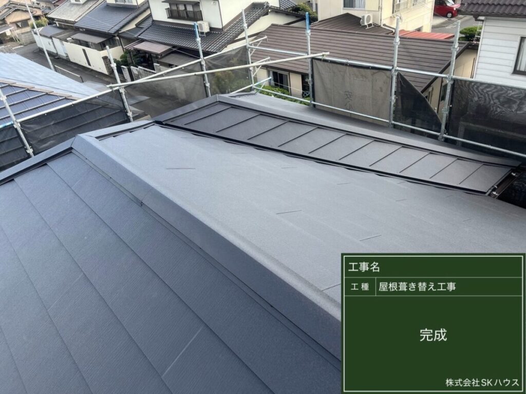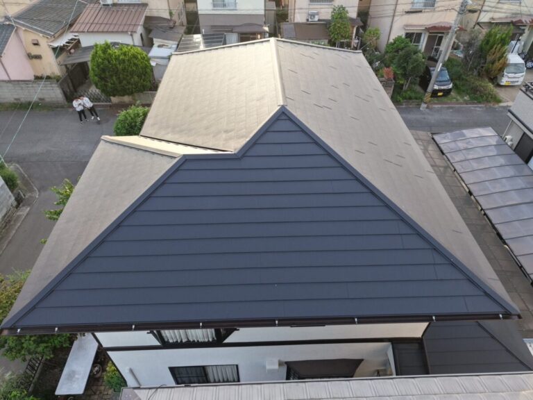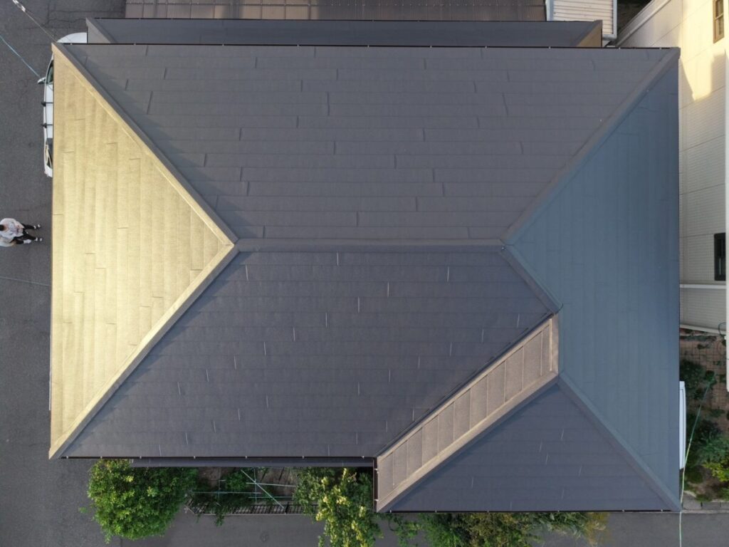 施工後は外観の印象も引き締まり、機能性とデザイン性を兼ね備えた屋根へと生まれ変わっています。