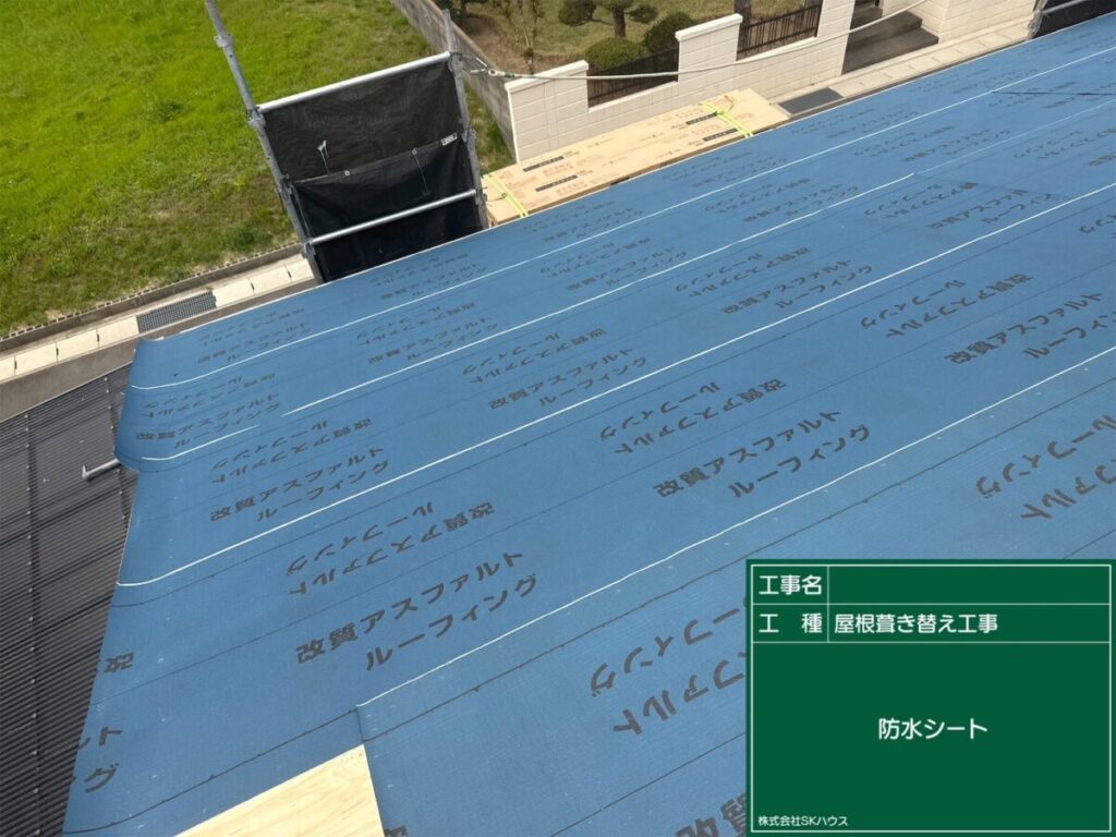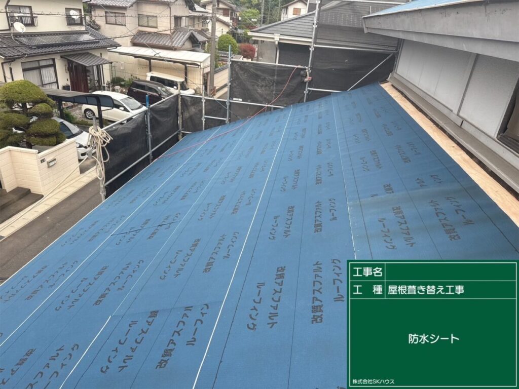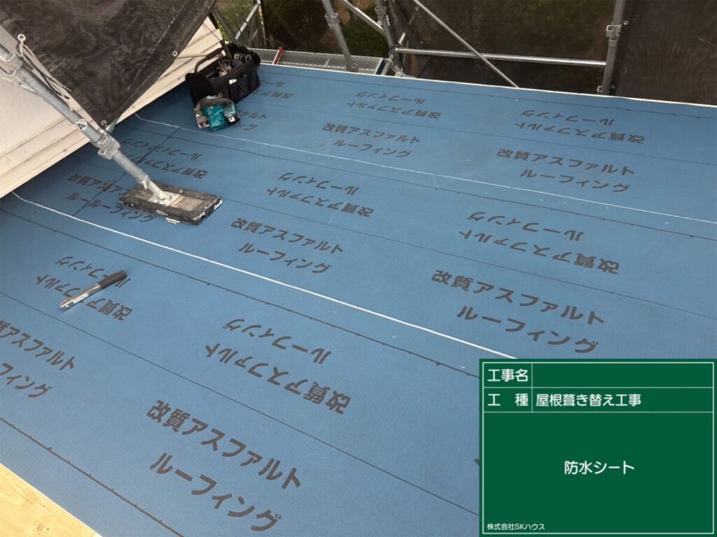 下地保護のため防水シート施工。