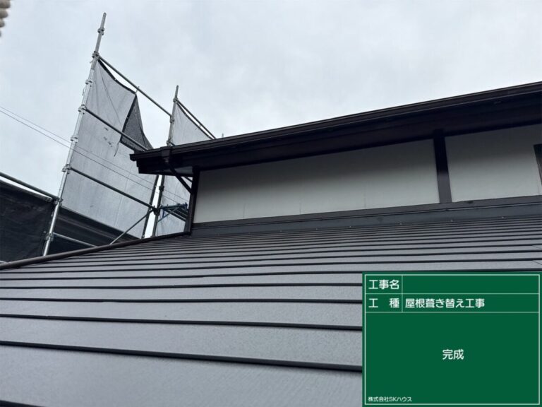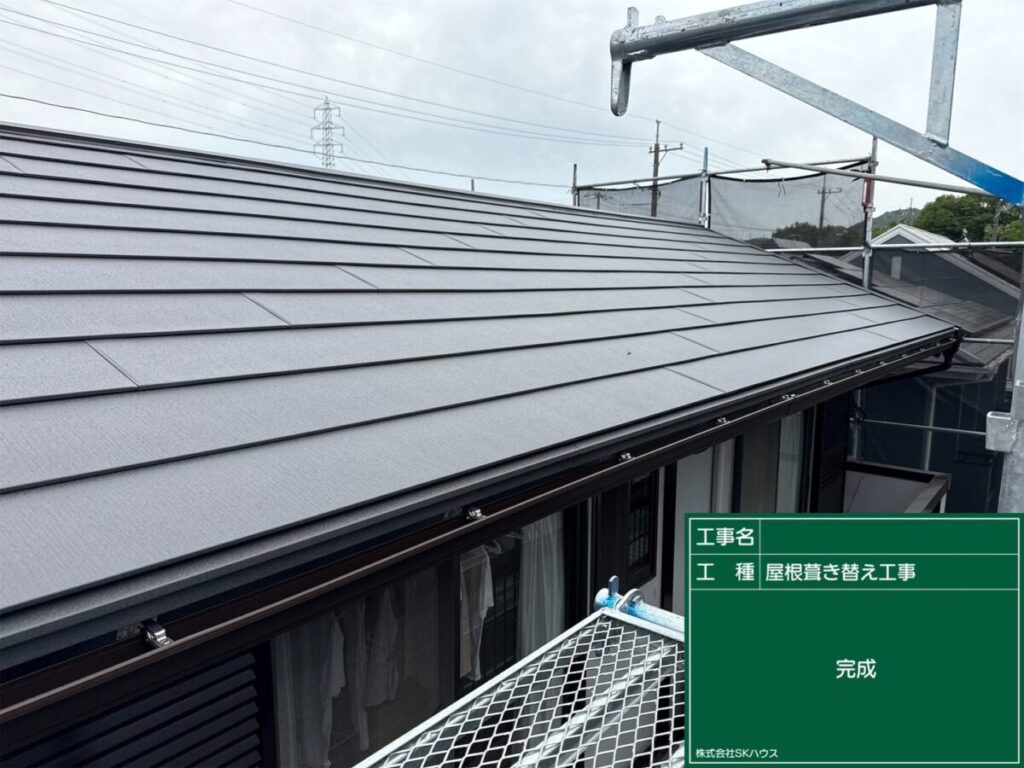 今回の工事では、古くなった屋根を新しい屋根材へ交換し、見た目も機能も安心できる状態に整えました。