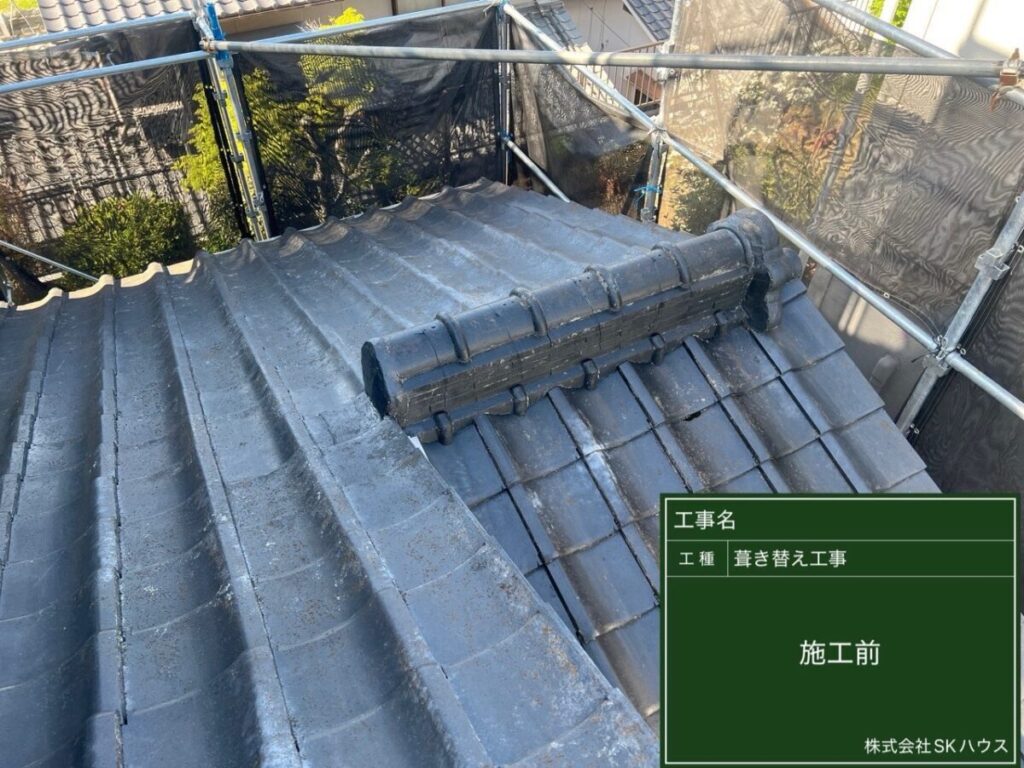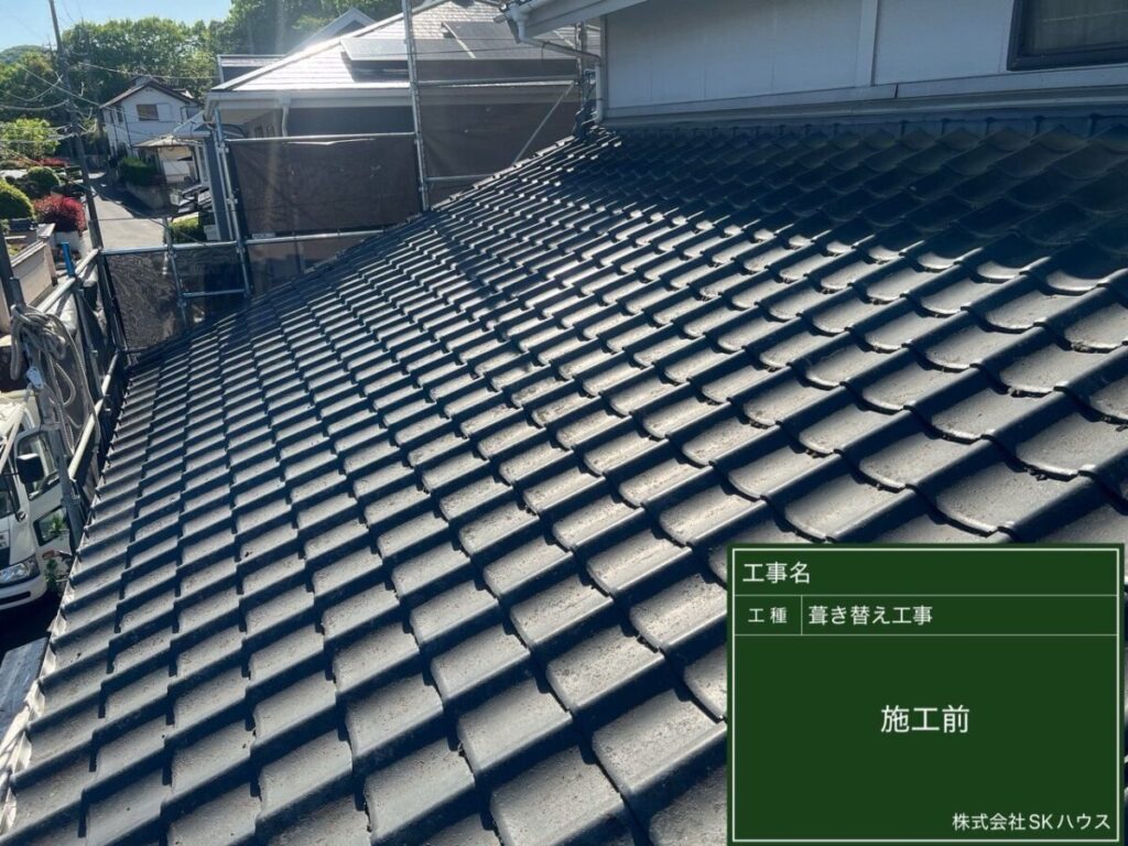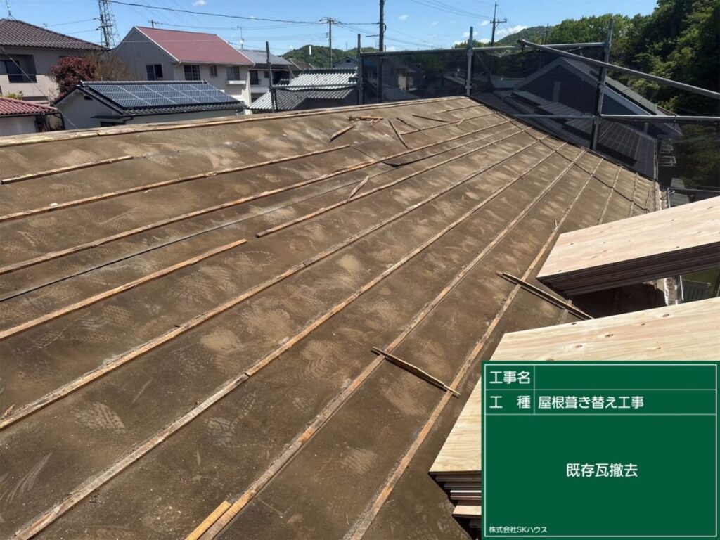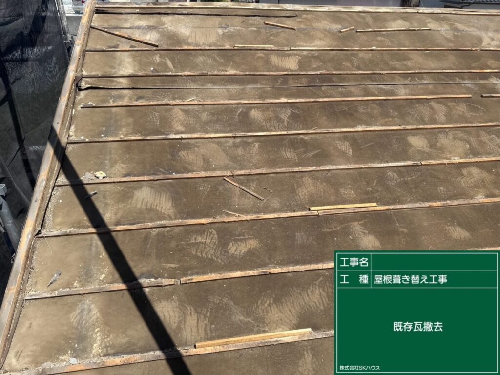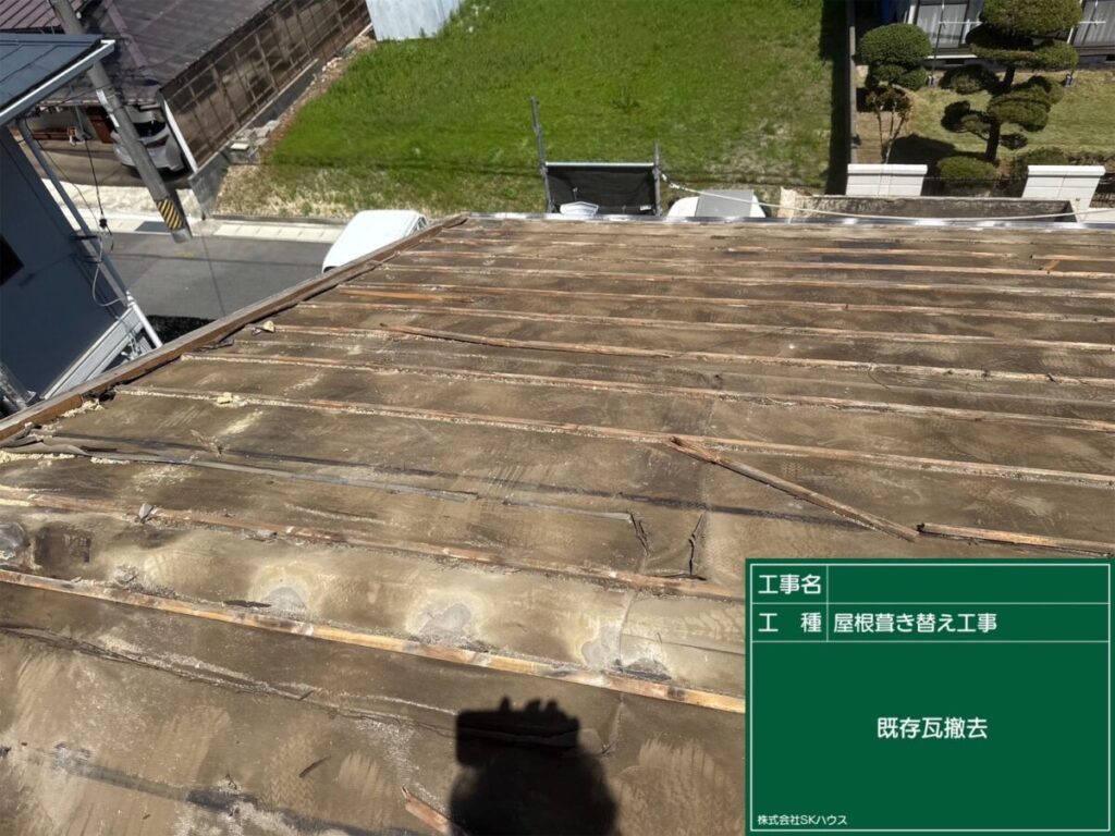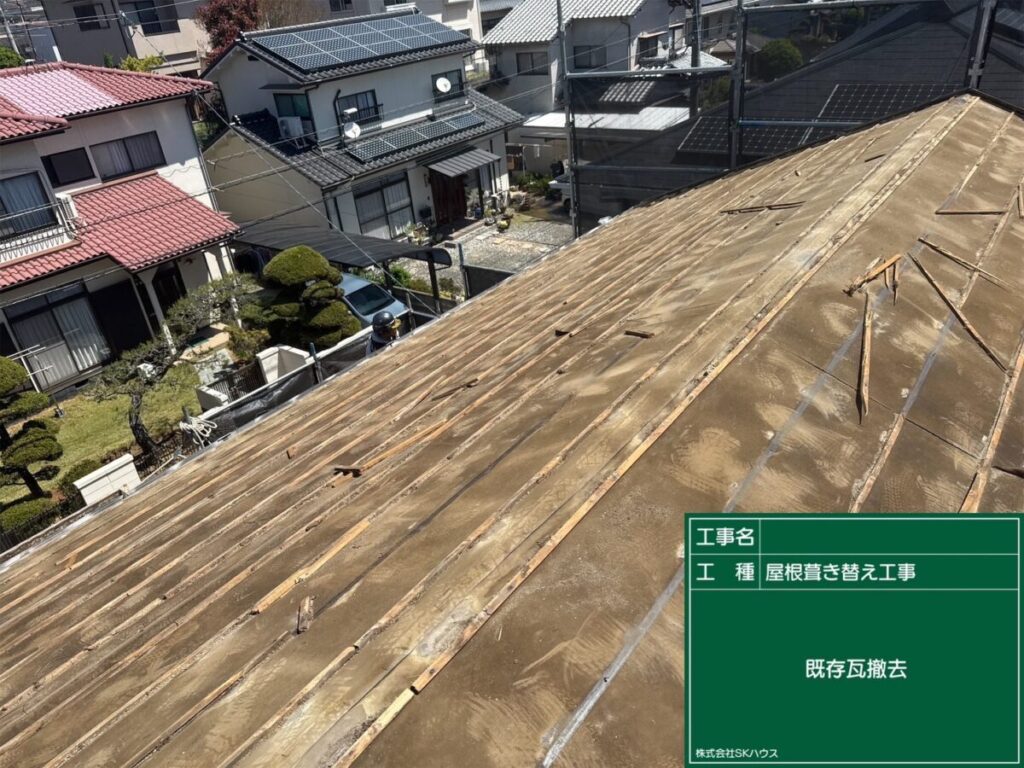 既存瓦を撤去し、下地をしっかりチェックしています。