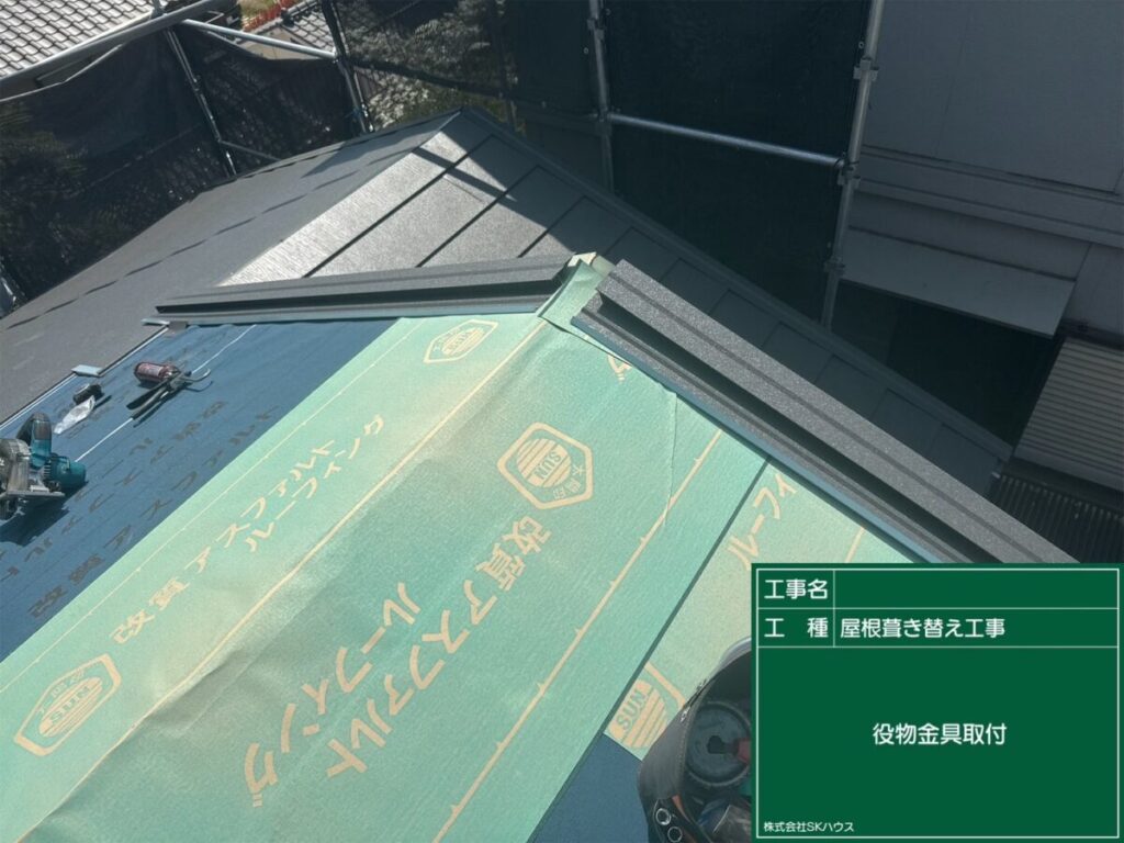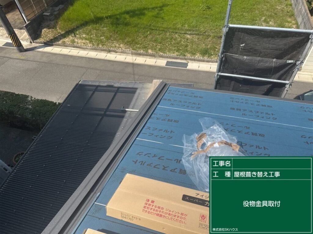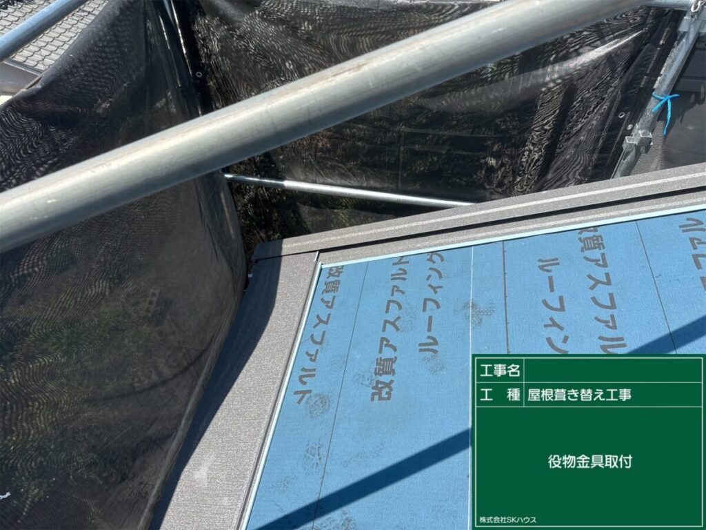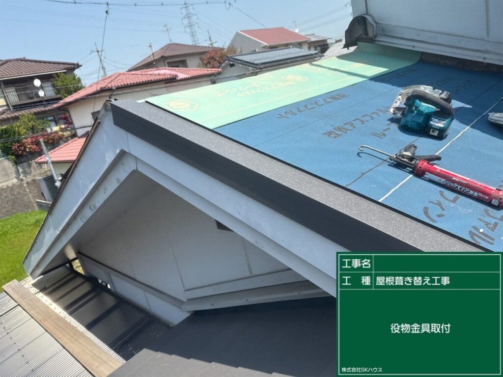 役物板金を施工し、雨水の侵入を防ぐ準備が整いました。