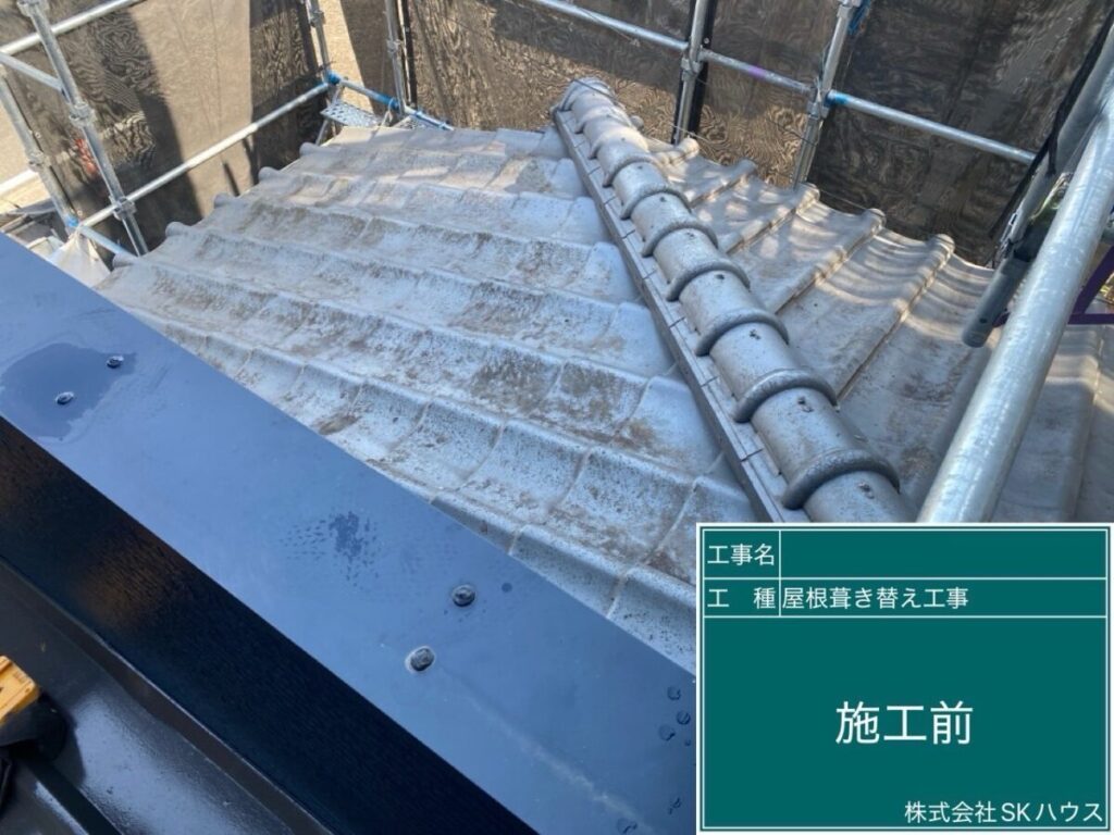 工事前は瓦の劣化が目立ち、防水性が低下していました。