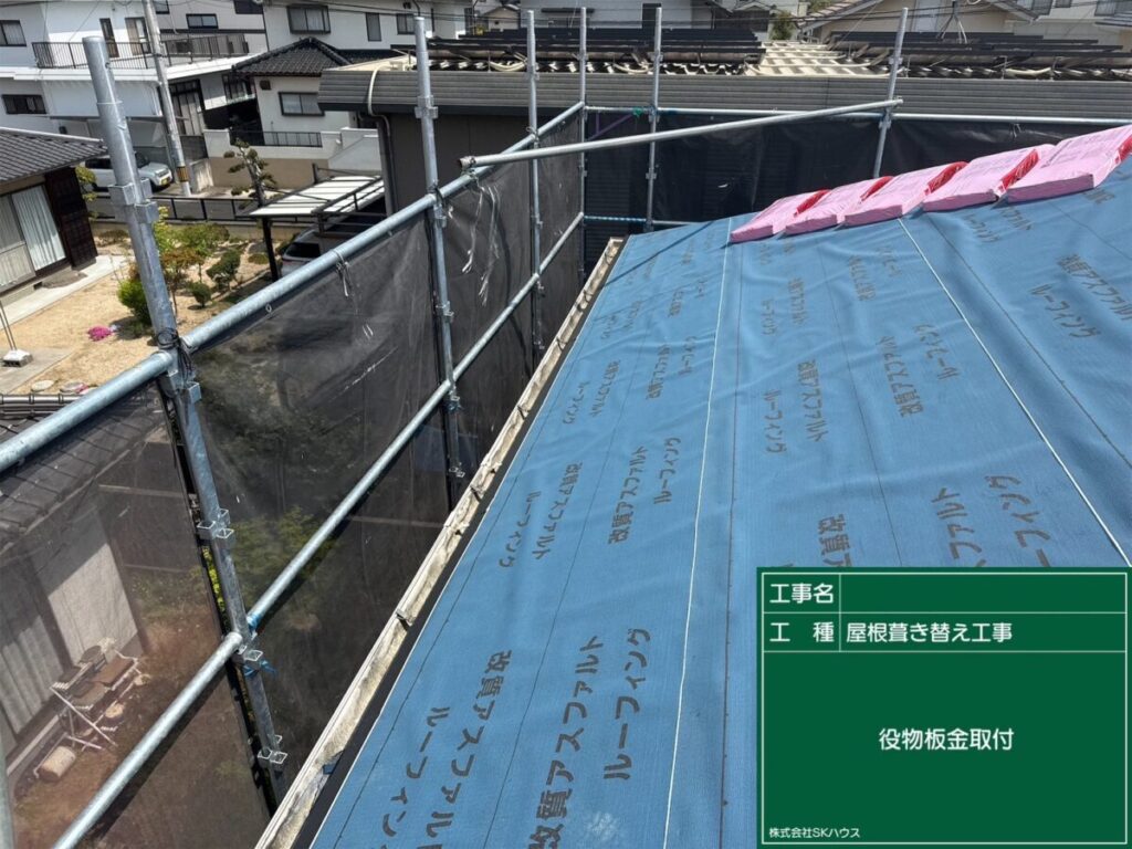 点検時には雨漏りのリスクが高い状態だったため、今回屋根の葺き替え工事を実施しています。