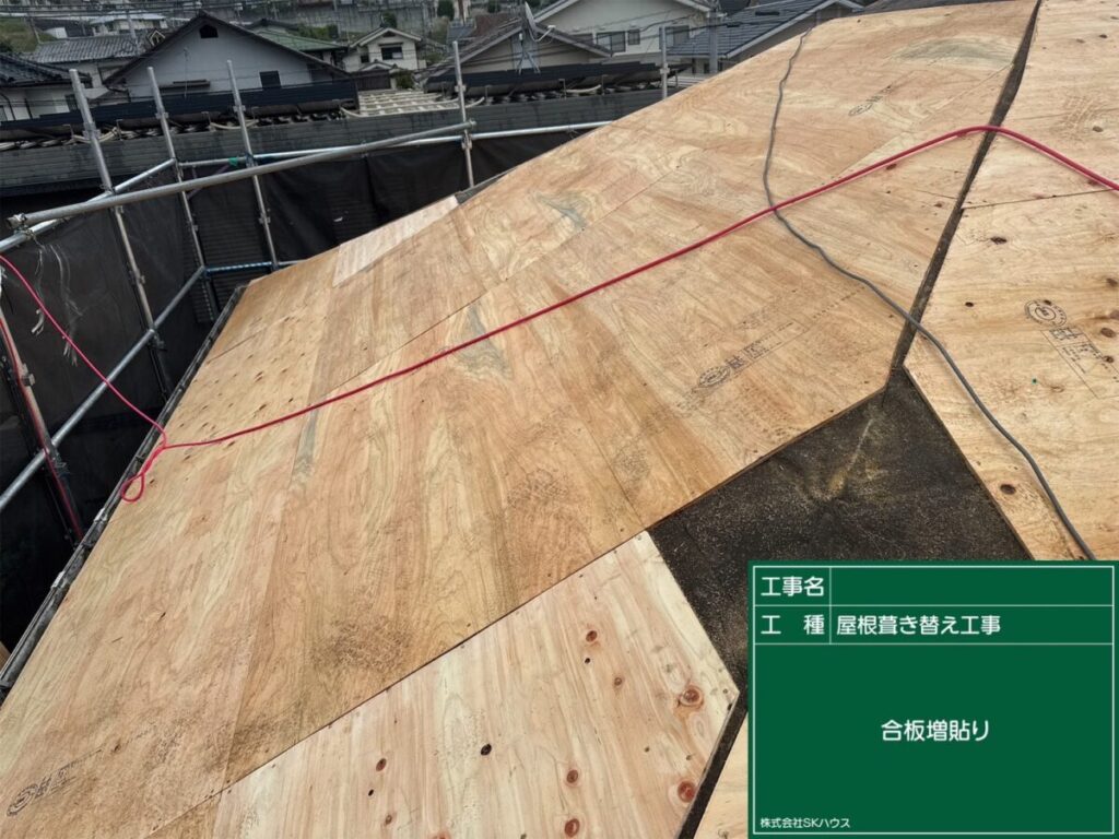 新しい合板を増し貼りし、屋根の強度を高めています。