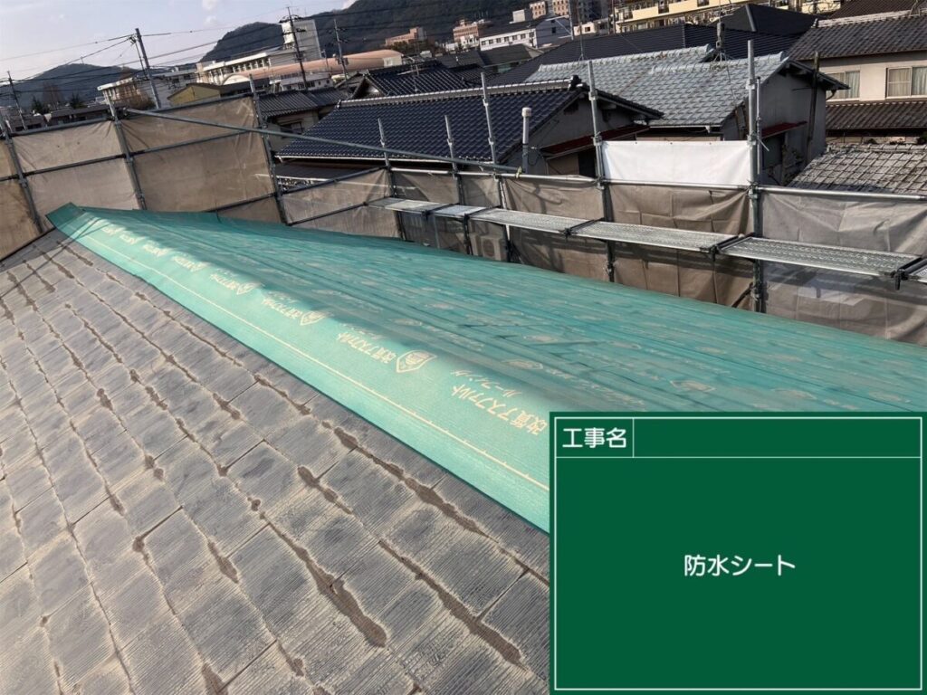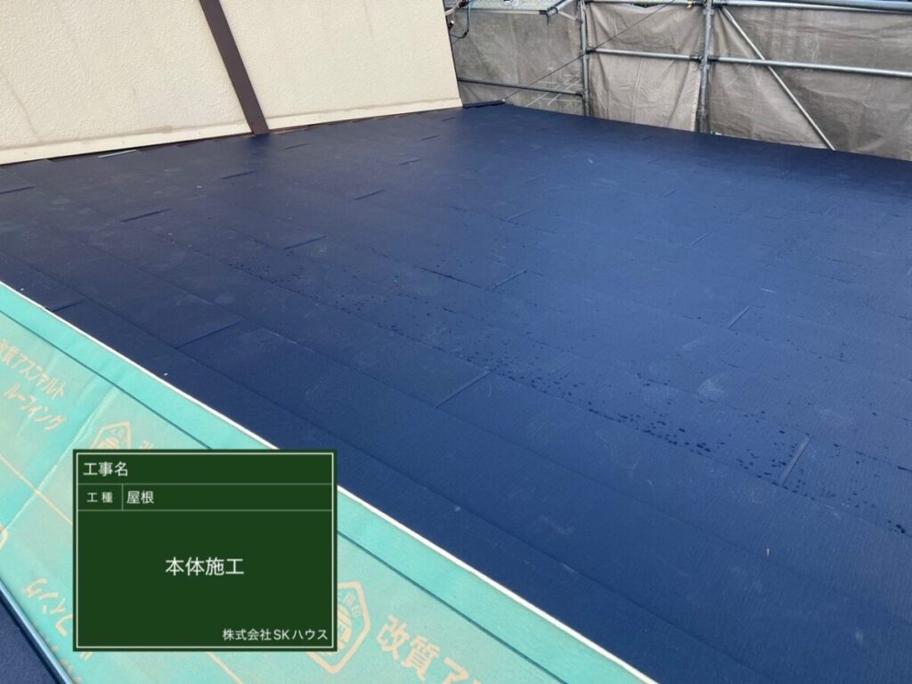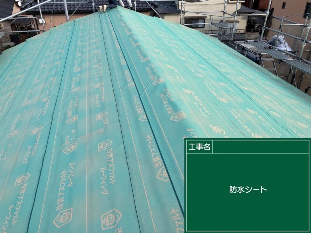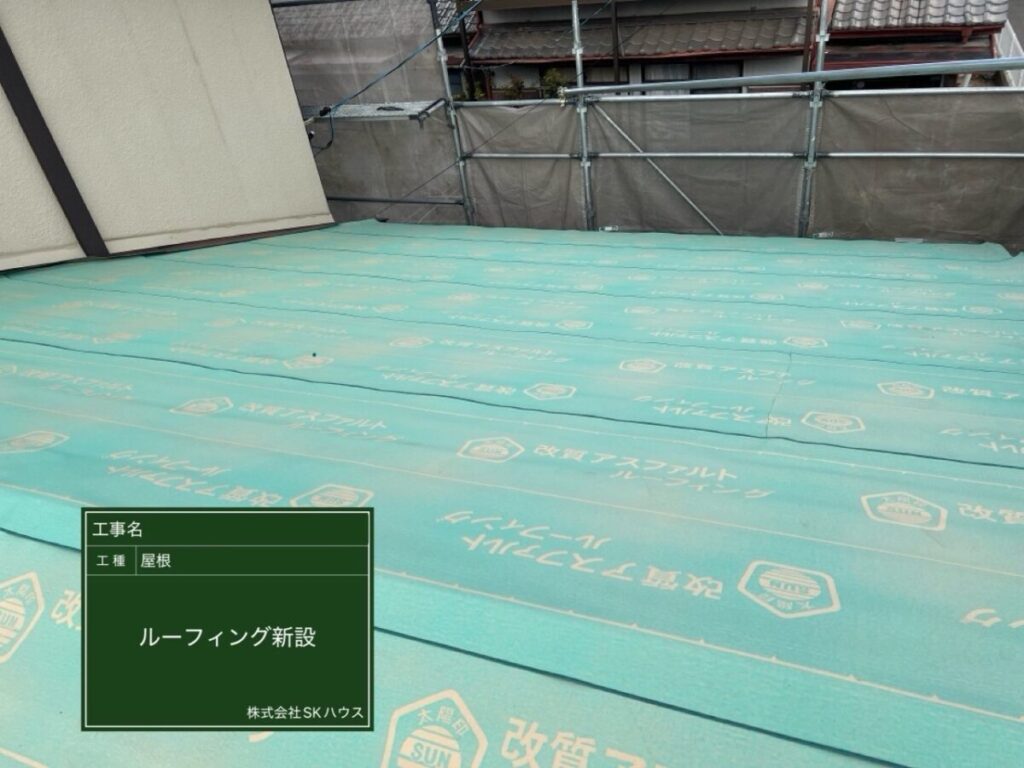 屋根全面に防水シートを丁寧に施工し、雨水の侵入を防ぐ準備ができました。