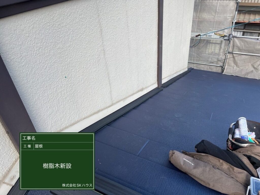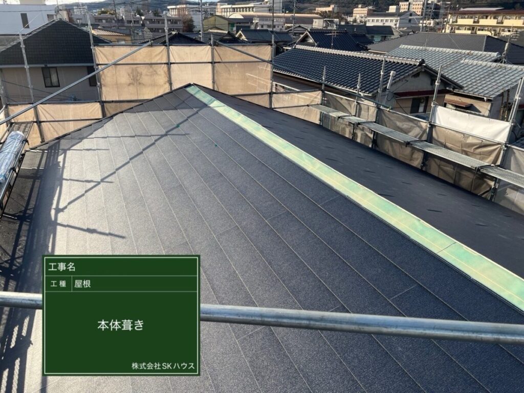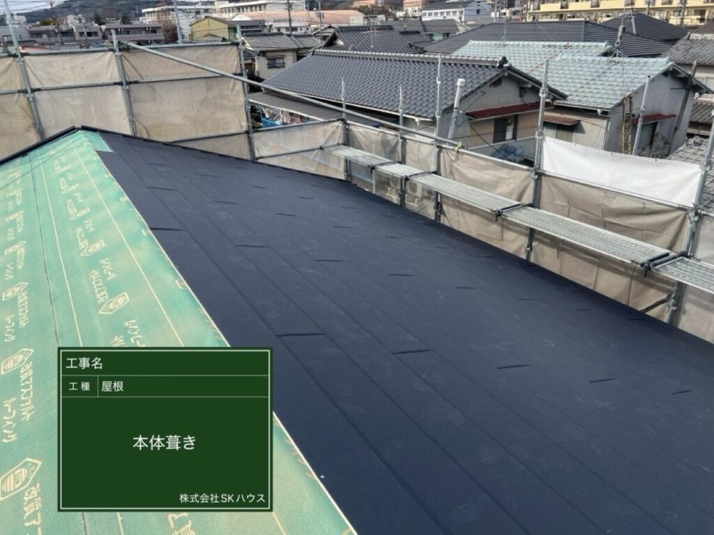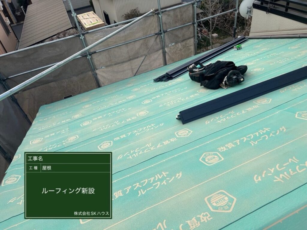 屋根全面に防水シートを丁寧に施工し、雨水の侵入を防ぐ準備ができました。