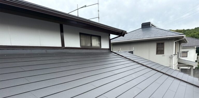 岡山県岡山市H様邸|雨漏りの心配を解消!ガルバリウム鋼板に葺き替え工事(青い立平葺きが美しく映える!)